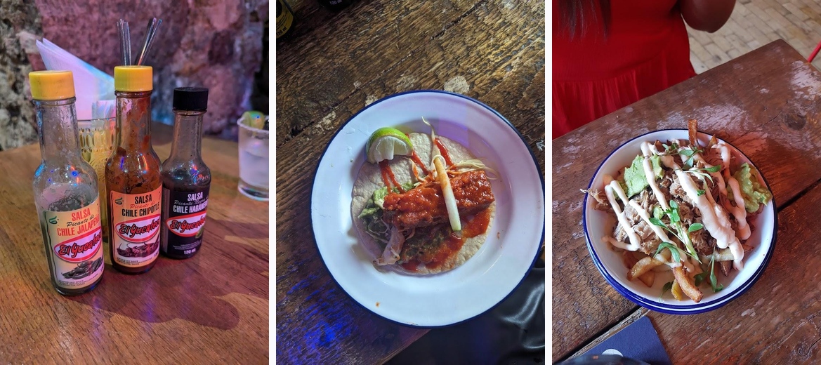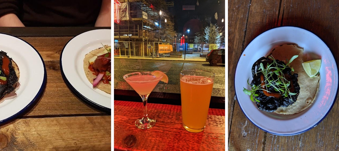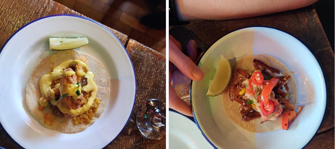 Really, really good food. Cocktails were excellent and interesting, and the service was spot on. The soft shell taco with pulled beef was unreal! Really good vegan options too. Only thing I'd not order again was the guac -£6 for a few nachos and guac when you can get more chips or another taco for less!